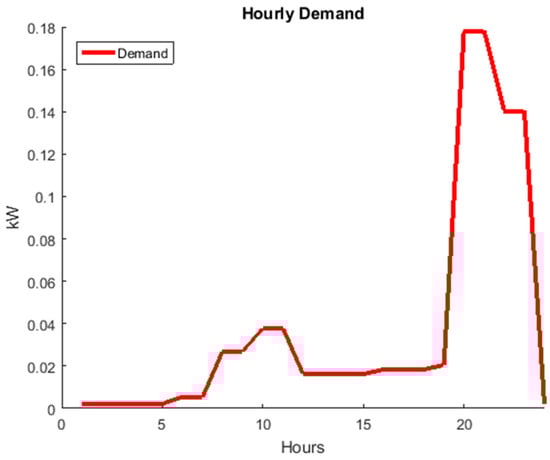The location of the buildings was obtained by manual identification using images from Google Earth (see Figure 12), and the location of the projected network of 11 kV comes from the National Rural Electrification Plan of Cajamarca, although we do not consider the possibility of extending the power grid for this case study. The network catalogue is based on [39], where a similar case was analyzed using REM. All the consumers have the demand profile shown in Figure 13 (also used in the previous example in Section 3), which was estimated dividing the aggregated demand profile presented in reference [40] by the corresponding total number of consumers.