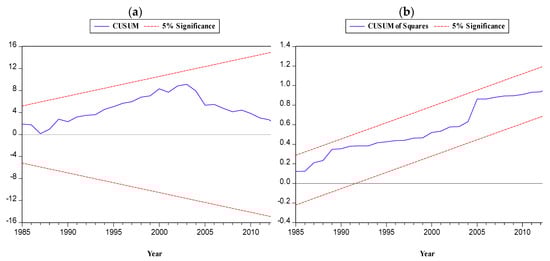 Stability test based on (a) CUSUM and (b) CUSUM of squares. Source “Authors’ calculation”.