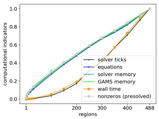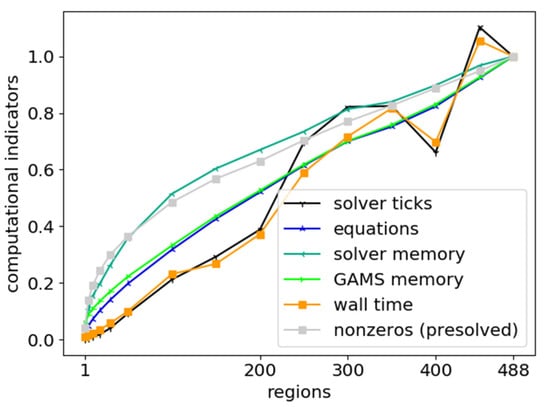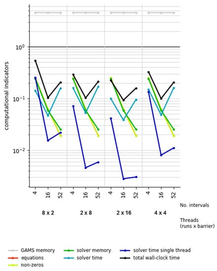 In this context, new energy policies are often investigated with the help of linear optimization models []. However, the increasing complexity of the system to be modelled results in energy system models that quickly reach their limits in terms of memory demand and reasonable computing time. Existing and especially future research questions in the field of energy system analysis can thus only be addressed to a limited extent. In applied studies, this challenge is tackled with different strategies. Out-of-the-box solutions that enable the use of massively parallelized high performance computers are not available, since therefore additional knowledge, e.g., about the matrix structure of the mathematical optimization problem is necessary. Therefore, the majority of currently applied speed-up strategies still rely on the application of commercial optimization software executed on shared memory hardware. However, the implementation costs and not the effectiveness often dominate the decision for an appropriate performance enhancement approach. In addition, the heterogeneity of applied strategies results in the fact that the comparability of model-based scenario studies is more difficult and the trade-off between implementation costs and achievable performance is often unknown. Since the used models show similarities in essential characteristics (e.g., with regard to fundamental equations or applied solver software packages), it can be assumed that effective speed-up strategies for energy system models are transferable.