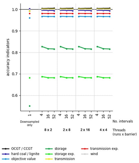- Breuer, T.; Bussieck, M.; Cao, K.-K.; Cebulla, F.; Fiand, F.; Gils, H.C.; Gleixner, A.; Khabi, D.; Koch, T.; Rehfeldt, D.; et al. Optimizing Large-Scale Linear Energy System Problems with Block Diagonal Structure by Using Parallel Interior-Point Methods. In Operations Research Proceedings 2017; Kliewer, N., Ehmke, J.F., Borndörfer, R., Eds.; Springer: Berlin, Germany, 2018. [Google Scholar]
