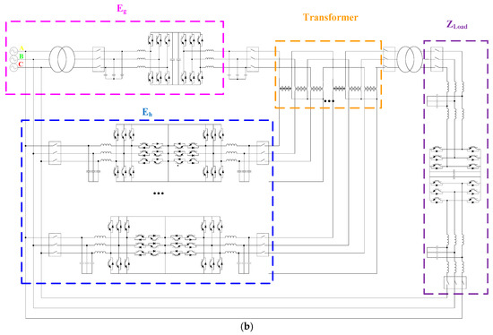 - A constant-impedance, constant-current, and constant-power load model is adopted. The load does not actually consume energy, and the energy is only consumed in power electronic devices and transmission loops.