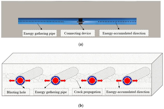 29]. While considering the characteristics of low rock tensile strength, He’s team developed an energy gathering pipe device for using directional blasting to produce crack propagation. Field application results (