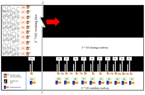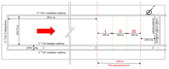 The field experiment area is located in the haulage entry, which ranged from 2811 m to 3111 m, for a total of 300 m, as shown in