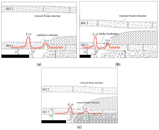 Key strata (KS) structural models in the advancing direction. (a) Model A; (b) Model B; (c) Model C.
