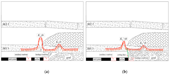 Figure 9a), which cannot meet the balanced bulk filling, while SKS 2 is in a higher strata, which can develop a stable voussoir beam structure. The peak abutment pressure is large and the dynamic disturbance phenomenon is severe under this condition.