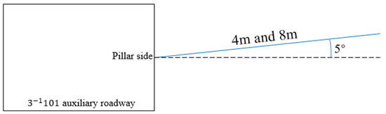 Figure 3. The design of the roof fracturing height can increase the height of the immediate roof by using this technology. At the same time, the energy of the explosive blasting and the pressure that is induced by mining can be fully utilized for the fracturing and bulk filling of the immediate roof, thereby ultimately improving the filling percentage in the gob. The movements of key strata are controlled by providing the deformation space, which can effectively limit the rotation space of the KS and reduce the abutment pressure on the retreated and auxiliary entries as well as the disturbance time of the dynamic pressure. The technology of directional blasting fracturing uses the pressure and the bulking factor of the roof above the gob to effectively fill mined-out regions and final pressure relief effect has been verified by a large number of projects. This study was conducted based on this technology.