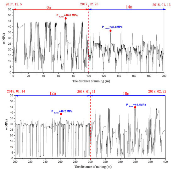 Figure 9b). In this model, the positions of the two KS are relatively close, which would cause periodic alternation between large and short weighting steps. This is particularly the case when occurring for a short weighting step, which shows that the large dynamic disturbance coefficient has a severe impact on the stability of the retreated entry prior to its occurrence.