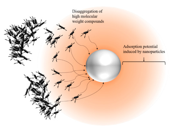 - Franco, C.A.; Nassar, N.N.; Montoya, T.; Ruíz, M.A.; Cortés, F.B. Influence of Asphaltene Aggregation on the Adsorption and Catalytic Behavior of Nanoparticles. Energy Fuels 2015, 29, 1610–1621. [Google Scholar] [CrossRef]