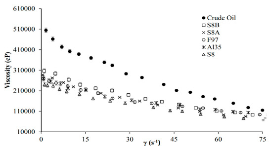 - Iskandar, F.; Dwinanto, E.; Abdullah, M.; Muraza, O. Viscosity reduction of heavy oil using nanocatalyst in aquathermolysis reaction. KONA Powder Part. J. 2016, 33, 3–16. [Google Scholar] [CrossRef]