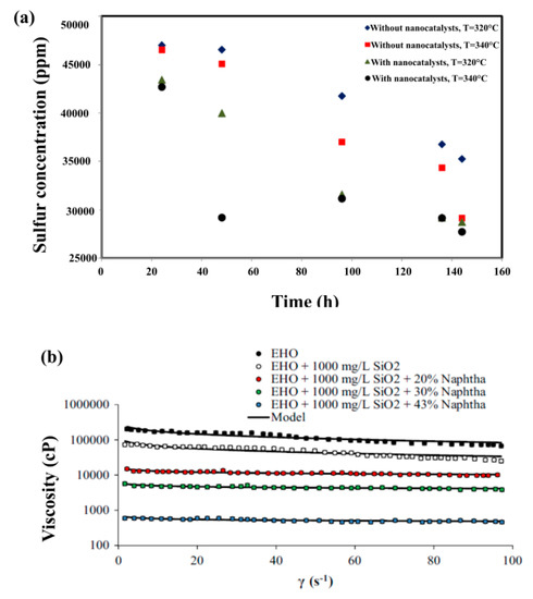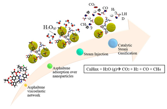 - Nassar, N.N.; Hassan, A.; Pereira-Almao, P. Application of nanotechnology for heavy oil upgrading: Catalytic steam gasification/cracking of asphaltenes. Energy Fuels 2011, 25, 1566–1570. [Google Scholar] [CrossRef]