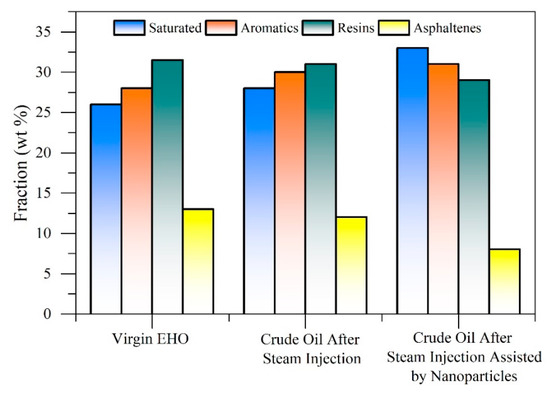 - Amrollahi Biyouki, A.; Hosseinpour, N.; Bahramian, A.; Vatani, A. In-situ upgrading of reservoir oils by in-situ preparation of NiO nanoparticles in thermal enhanced oil recovery processes. Colloids Surf. A Physicochem. Eng. Asp. 2017, 520, 289–300. [Google Scholar] [CrossRef]