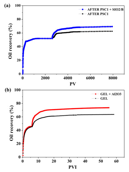 - Hashemi, R.; Nassar, N.N.; Pereira Almao, P. Enhanced heavy oil recovery by in situ prepared ultradispersed multimetallic nanoparticles: A study of hot fluid flooding for Athabasca bitumen recovery. Energy Fuels 2013, 27, 2194–2201. [Google Scholar] [CrossRef]