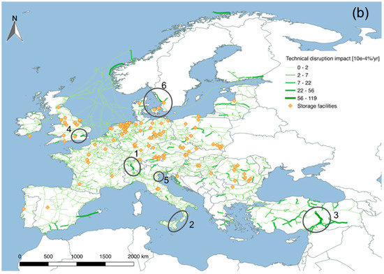 - Lustenberger, P.; Sun, T.; Gasser, P.; Kim, W.; Spada, M.; Burgherr, P.; Hirschberg, S.; Stojadinović, B. Potential Impacts of Selected Natural Hazards and Technical Failures on the Natural Gas Tranmission Network in Europe, in European SAFETY and Reliability Conference (ESREL); Taylor & Francis: Portoroz, Slovenia, 2017. [Google Scholar]