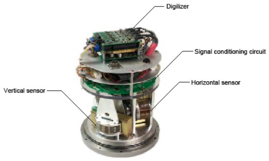 Figure 1 shows an image of the integrated EAM with the different components [5]. The use of a digitizer upon the signal conditioning circuit to process the amplification, current-voltage conversion, compensation, and feedback loop is proposed for the analog-to-digital conversion of the signal from the sensing elements of both the vertical and horizontal sensors.