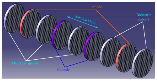 - Agafonovz, V.A.; Nesterov, A.S. Convective current in a four-electrode electrochemical cell at various boundary conditions at anodes. Russ. J. Electrochem. 2005, 41, 880–884. [Google Scholar] [CrossRef]