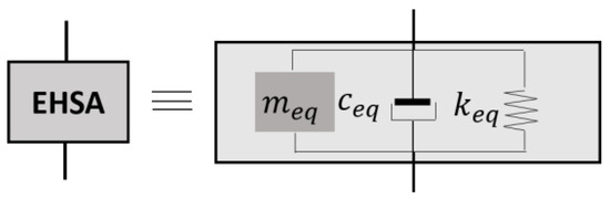 For the mathematical modeling of both systems, the equivalent mechanical model presented in Figure 1 will be used. This consists of deriving from the equations of the dynamics of each system a coefficient of: equivalent mass , also known as inerter [38], an equivalent damping coefficient , and an equivalent stiffness coefficient , as proposed by Bowen et al. [15], as in Equation (1).
