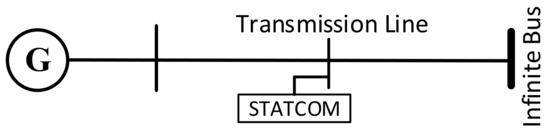 The single machine infinite bus (SMIB) with STATCOM deployed at the transmission line.