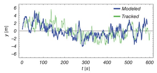 Comparison that examines the first origin of wake meandering, i.e., large-scale eddies, which drive the wake deficits as passive scalars. Comparison of the wake position predicted by the DWM model with the measurements for a 95 kW wind turbine. The measurement was taken using a nacelle-mounted LiDAR system. The wind direction data from the sonic anemometers were employed as input for the DWM model. A running average using a window size of two diameters was applied to the wind direction data to remove the variations due to small scale eddies. Reproduced from [14]. Reprinted with permission.