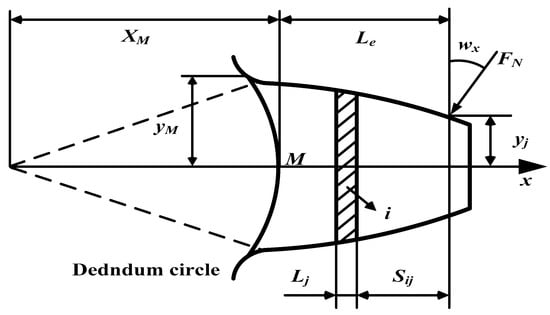 According to the literature [] and Equation (1), the wear depth at each point of the gear tooth profile can be obtained.