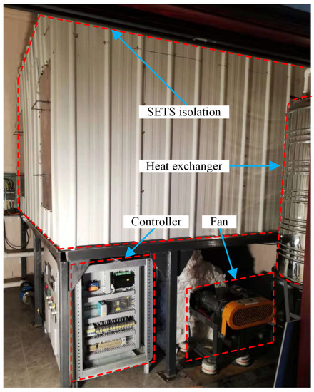Figure 1 shows a schematic diagram of SETS. It contains electric heating wires, magnesia bricks, the temperature sensor of bricks, two layers of thermal isolation (including perlite and ceramic fiber) wrapped in steel plates, heat exchanger, and fan. When the SETS operates, the resistive heating wires generate thermal energy, which will be stored in the bricks for discharging. The cold air is blown into the interior by the fan, and transferred into hot air by the heating wires for changing the entrance temperature of the heat exchanger. The cold water is circulated into the heat exchanger through the return water pipe and heated by the hot air to improve the customers’ room interior temperature. SETS becomes a convenient DSM tool for utility companies.