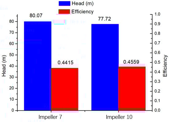 Figure 14. Performance comparison of impeller 7 and impeller 10.