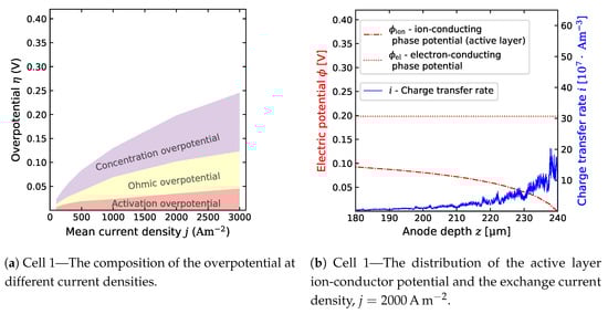 where the specific electrochemical and material parameters were computed from the relationships reported by Matsuzaki et al. [], Miyoshi et al. [], and Kim et al. [] Since the cathode side is not the main focus of this paper, we refer the reader to the aforementioned papers for further details.