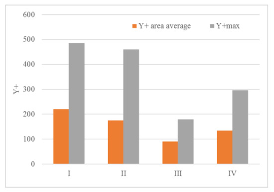 Y+ average and Y+ max parameters for the selected grids.