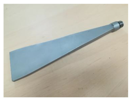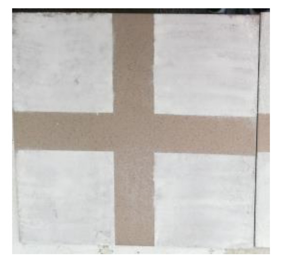 Indirect model validation was conducted due to difficulties in the direct measurement of flow parameters. In the experiment, the nozzle in geometry A was used (Figure 8). As described in [27], outlet flow velocity has a crucial influence on dry ice blasting cleaning time. It can be assumed that cleaning speed depends on the kinetic energy of the stream; therefore, ~u2. During the experiment, the given surface was cleaned from two distances: 15 cm and 30 cm, and cleaning time was measured. The first test involved a steel sheet covered in synthetic paint (Figure 9): inlet pressure of 5 bar, dry ice mass flow rate of 48 kg/h (test I). In the second test, a ceramic surface was covered in flour with wallpaper glue (Figure 10): inlet pressure of 3 bar, dry ice mass flow rate of 40 kg/h (test II). The validation results are presented in Table 4.