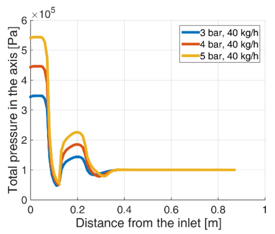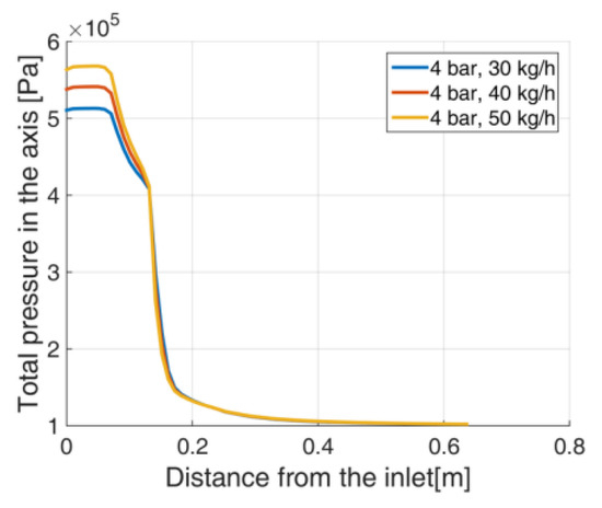 Total pressure in the nozzle axis, Geometry A.