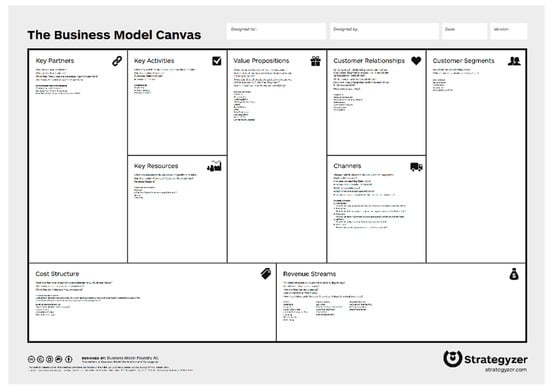 - Osterwalder, A.; Pigneur, Y. Business Model. Generation: A Handbook for Visionaries, Game Changers, and Challengers; John Wiley and Sons: Hoboken, NJ, USA, 2010; ISBN 1118656407, 9781118656402. [Google Scholar]