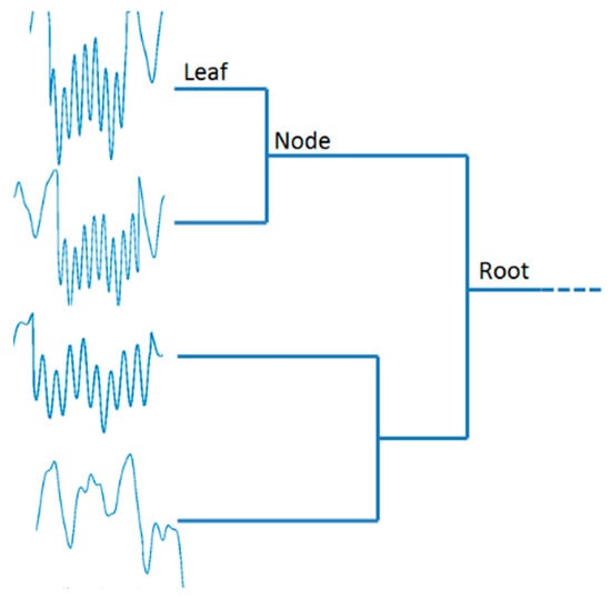 To this aim, an agglomerative hierarchical clustering algorithm based on a bottom-up approach is used. It builds up clusters starting from single subsequences and, then, merges these atomic clusters into larger and larger clusters, until all subsequences lie in a single cluster [55] and a dendrogram is formed (see Figure 5). The most-right nodes (leaf nodes) of the dendrogram represent the subsequences, whereas the remaining nodes represent the clusters to which the data belong up to the most-left node which is called root node. The tree-like diagram shows (dis)similarities among groups of subsequences, where the vertical axis represents the subsequences and how they are merged into clusters, whereas the horizontal axis represents the (dis)similarities among subsequences or clusters. The height of each node (x-axis) is monotonically increasing with the level of the merger, so that the projection of the node on the x-axis is proportional to the value of the intergroup dissimilarity.
