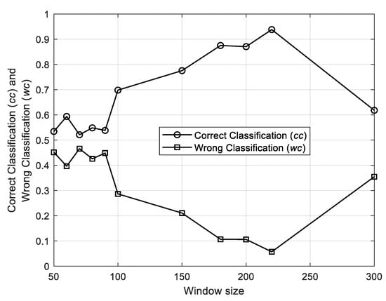 The setting of is based on a priori knowledge on the process, if available, such as the typical periodicity of the signals in normal conditions and information on the durations of the anomalies, and fault diagnostic requirements, such as the time available for recovery decisions and interventions after the anomaly onset detection. On the one hand a short window length allows a prompt identification of the anomaly since less signals value should be collected for its diagnosis, on the other hand a long window length allows using more information for the classification and, therefore, is expected to improve the classification performance.