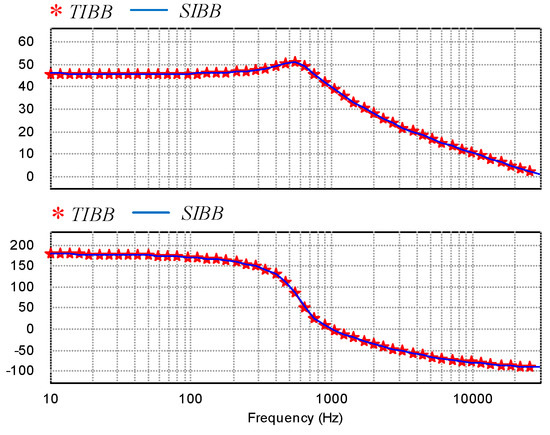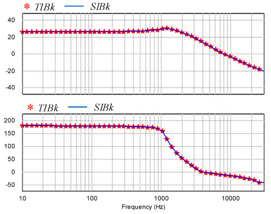 Figure 6. As expected, the results are precisely matched. Thus, the notion of the equivalence of SIBk and TIBk converters is confirmed.