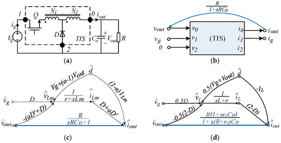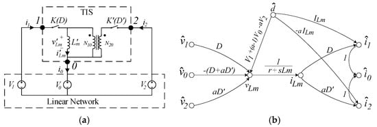 22]. First, the switching part of the converter is symbolically substituted by the TIS block, complemented by the flow graph of the linear part of the converter as shown in