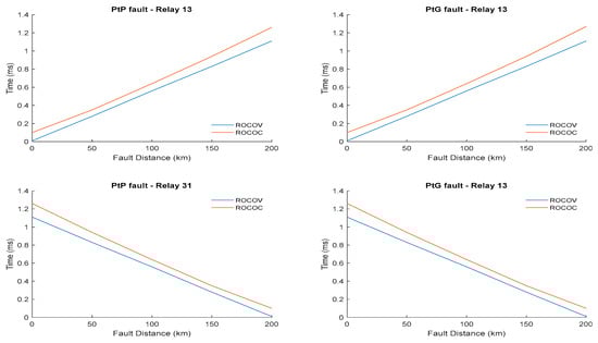 In this subsection, the influence of the fault location on the ROCOV performance is analyzed. Several 0.01 Ω PtP and PtG faults at different locations in link 13 are simulated. The analysis of the ROCOV algorithm performance is summarized in