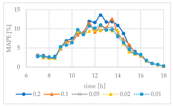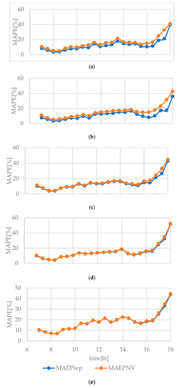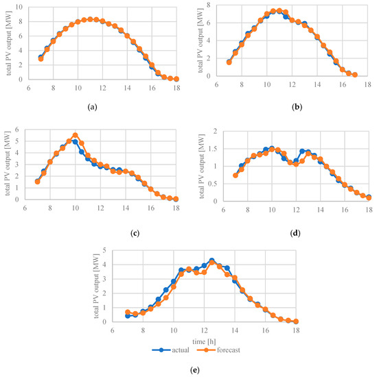 - Correlation between the available amount of data of PV systems and prediction accuracy: All the data we could obtain were used to forecast with the best prediction accuracy in this study. However, we hypothesize that the prediction accuracy depends on the available data. Therefore, it is important to investigate their relationship and to determine the minimum amount of data with which forecasting can be done with a tolerable accuracy.