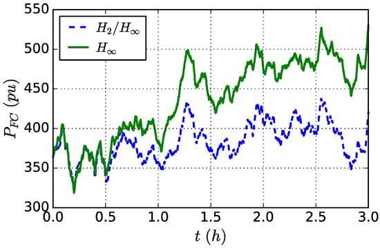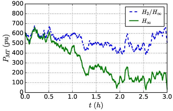 To further demonstrate the flexibility of the proposed method, a different scenario for the ER system is considered within a longer time period. Here, we take the assumption that within the considered three hours, part of the generators in MTs, DEGs, and FCs have experienced certain failure, which leads to a decrease in the adjustment range of total power outputs of MTs, FCs and DEGs. In order to ensure the normal operation of the ER system, the objectives for controller designing should also be adjusted accordingly. For the considered time period, the parameters for are set to be , .