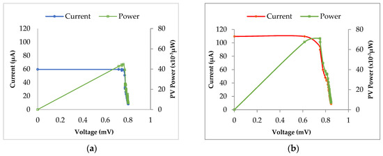 The total power at the peak point of the PV-TEG hybrid by using the HM was equal to 68.77 × 10−3 µW, while by CM it reached 100.53 × 10−3 µW. This means that the power generated using the CM as spectrum splitter is approximately 40% better than the HM.