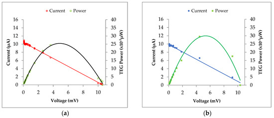 Characteristics of P-V and I-V in TEG; (a) reflected HM, (b) transmitted CM.