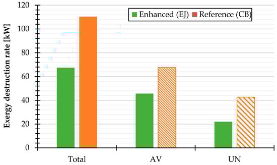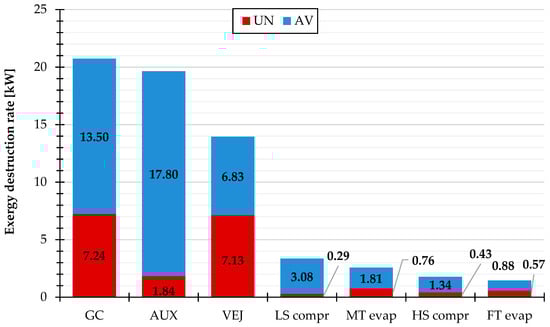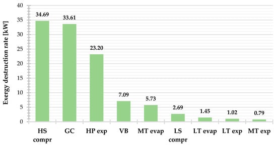 - the exergy destruction of the evaluated component (i.e., ) was calculated through Equations (1) and (2);