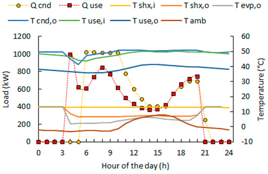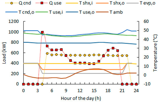 - Full load equivalent hours:where is the nominal power of the condenser and is the nominal power of the evaporator.