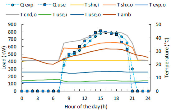 where . Expressions (7) and (8) are easily implemented in transient simulations and allow considering variable flow control () and periods during which the SHX is not in operation (). Lastly, the UA value of the SHX is determined from the well-known expression of valid for counterflow heat exchangers, with the fraction of the heat capacities of the media considered smaller than 1: