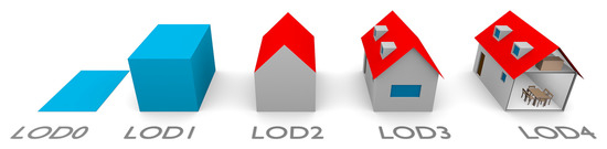 - Biljecki, F.; Ledoux, H.; Stoter, J. An improved LOD specification for 3D building models. Comput. Environ. Urban Syst. 2016, 59, 25–37. [Google Scholar] [CrossRef]