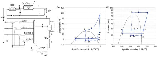 - Singh, S.; Amshith, R.; Prakash, M.M.; Banasiak, K.; Hafner, A.; Nekså, P. Performance Investigation of a Multi-ejector R744 Heat Pump. In Proceedings of the 13th IIR Gustav Lorentzen Conference on Natural Refrigerants, Valencia, Spain, 18–20 June 2018. [Google Scholar]