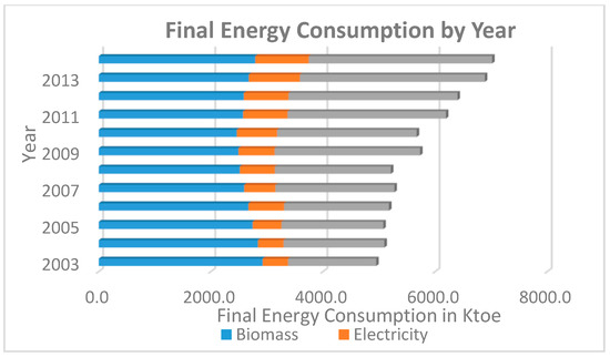 Total Energy Consumption by Type of Energy, 2003–2014 [40,41].
