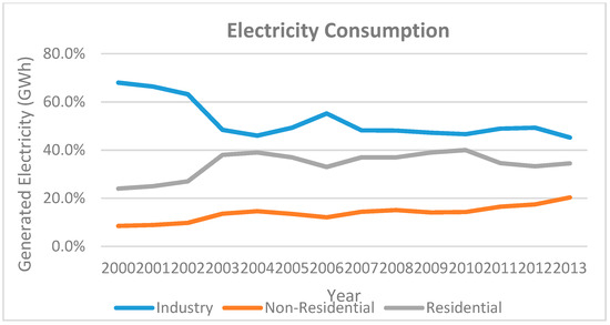Percent of Share of Grid Electricity Consumed by Different Consumer Classes [40].