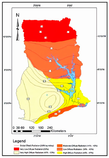 - Ghana Energy Commission. Solar and Wind Energy Resource Assessment (SWERA); Ghana Energy Commission: Accra, Ghana, 2003.