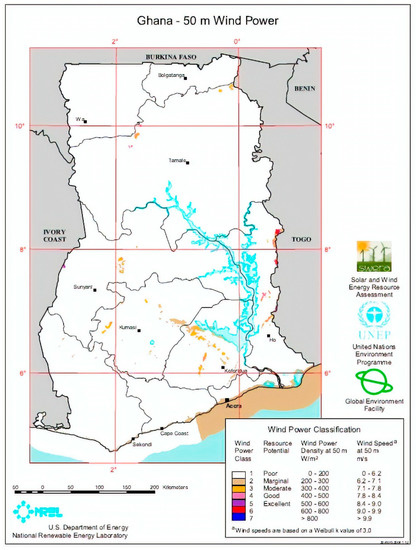 - NREL. Ghana Wind Energy Resource Mapping Activity; NREL: Golden, CO, USA, 2003.
