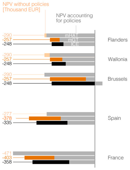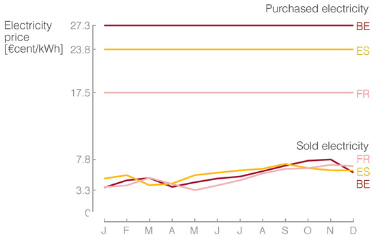 In terms of the natural gas, the prices considered were those reported by Eurostat for 2018 for each country, i.e., €/kWh for Belgium, €/kWh for Spain and €/kWh for France [62].