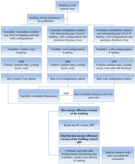 - Considering the results in terms of comfort rates, cooling needs and the costs associated for each insulation thickness evaluated in (c), the Analytic Hierarchy Process was applied to choose the best insulation thickness for roof and walls;
